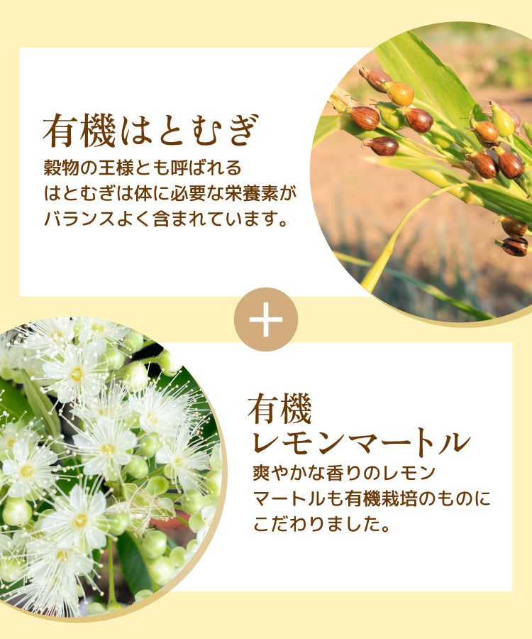 ✅原産地:有機はと麦(ラオス産)、有機レモンマートル(オーストラリア産)